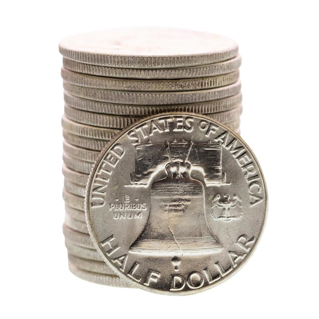 Roll of (20) Brilliant Uncirculated 1958 Franklin Half Dollar Coins