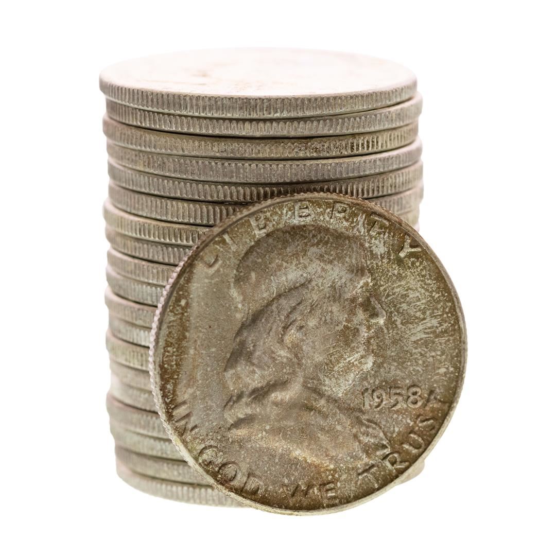 Roll of (20) Brilliant Uncirculated 1958 Franklin Half Dollar Coins