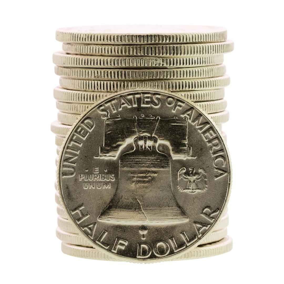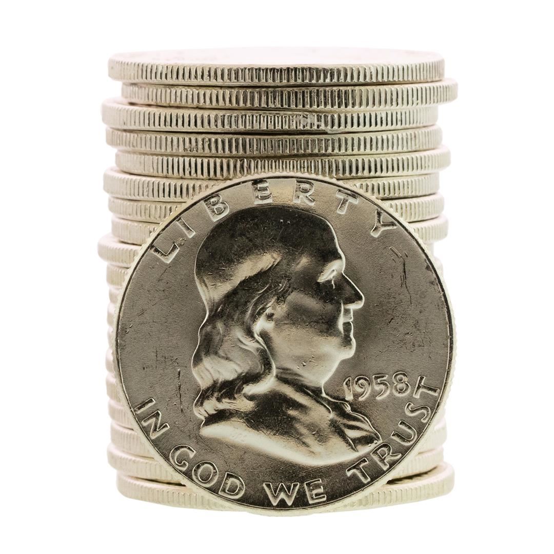 Roll of (20) Brilliant Uncirculated 1958 Franklin Half Dollar Coins