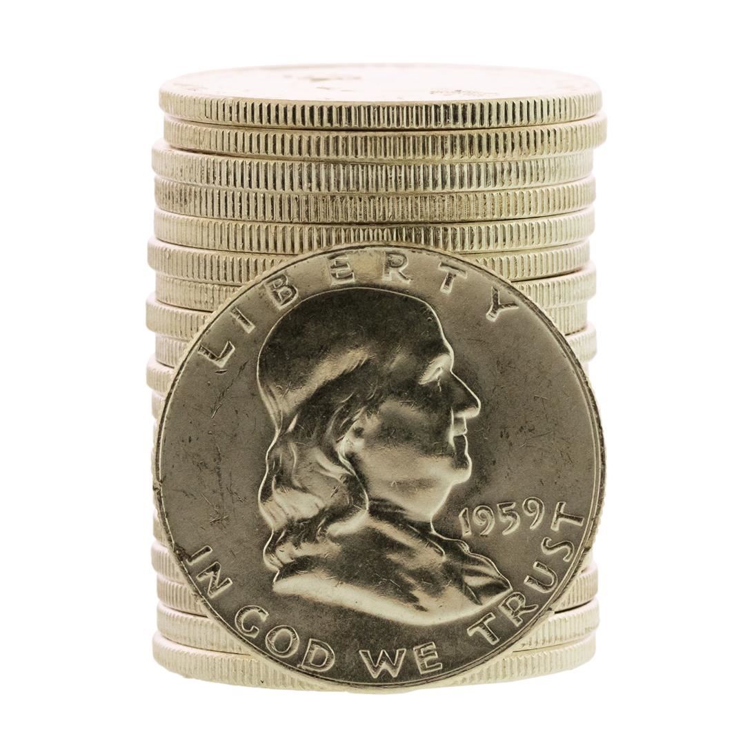 Roll of (20) Brilliant Uncirculated 1959 Franklin Half Dollar Coins