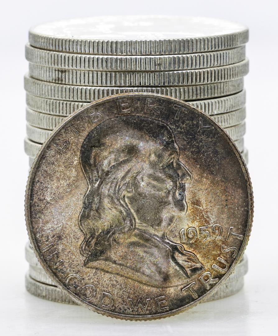 Roll of (20) Brilliant Uncirculated 1959 Franklin Half Dollar Coins