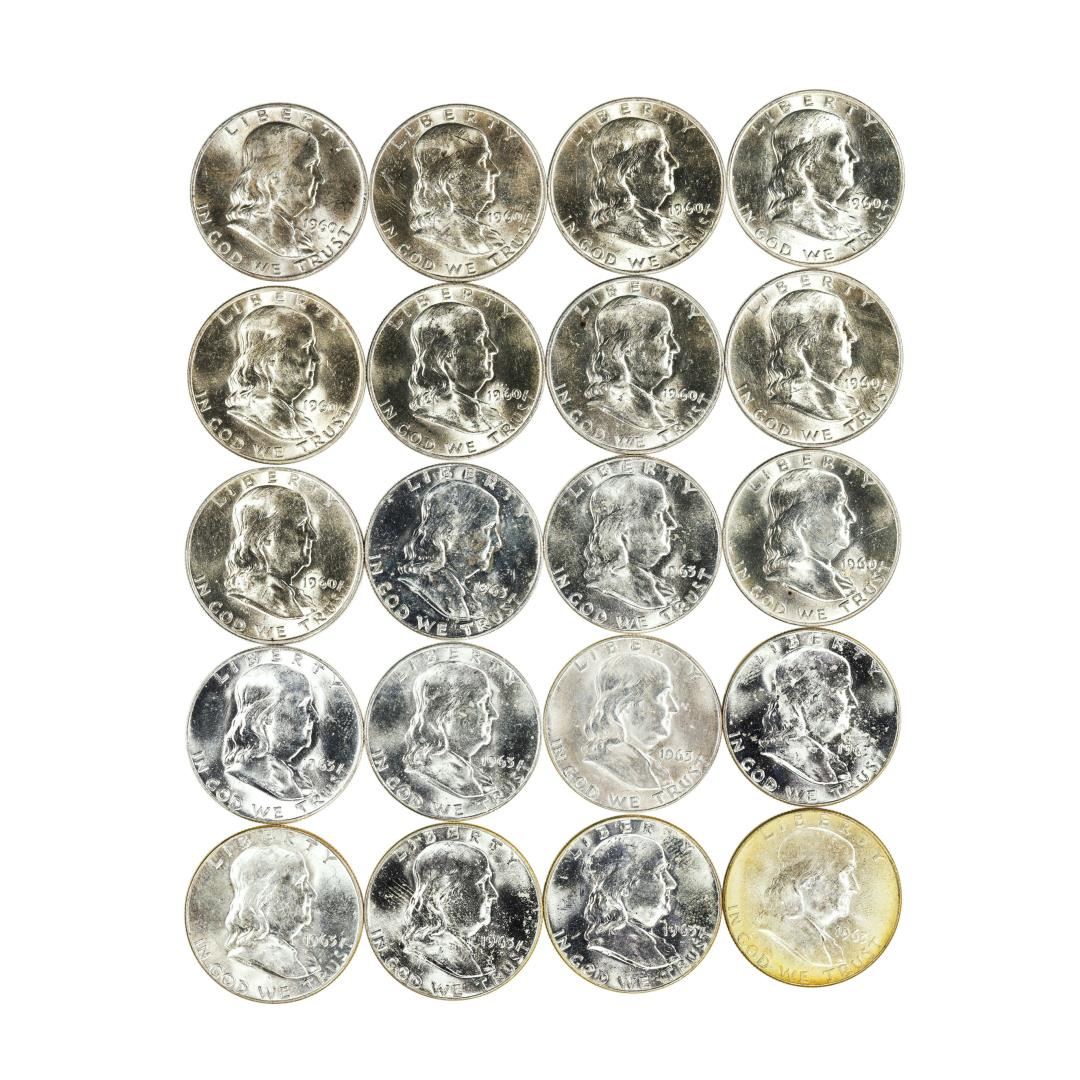 Roll of (20) Brilliant Uncirculated 1960-D & 1963-D Franklin Half Dollar Coins
