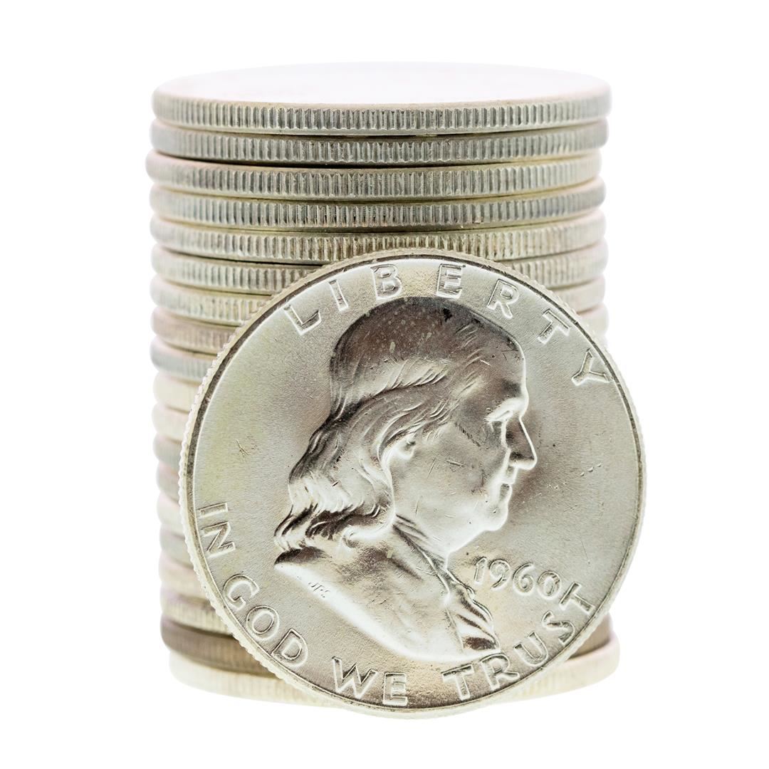 Roll of (20) Brilliant Uncirculated 1960 Franklin Half Dollar Coins