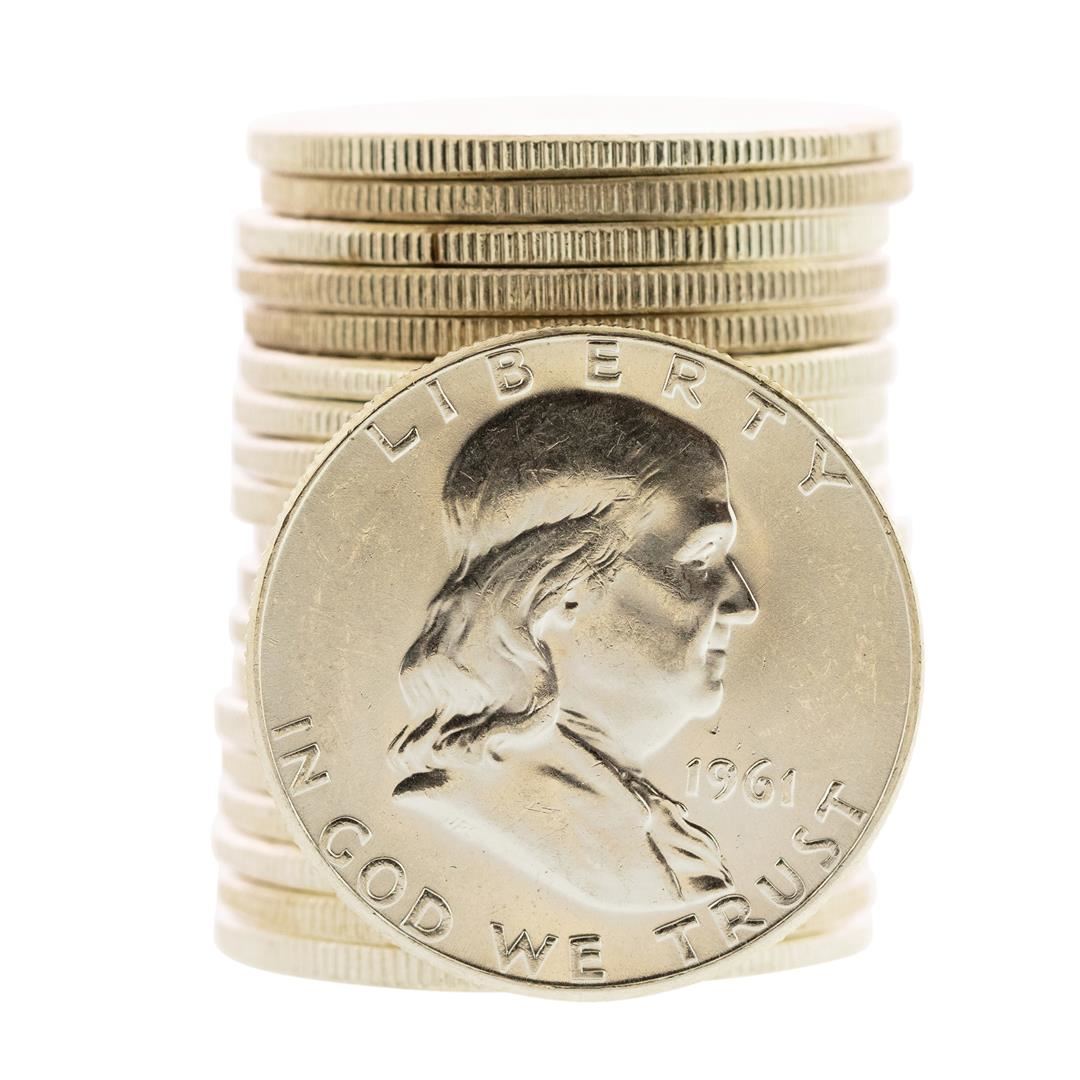 Roll of (20) Brilliant Uncirculated 1961 Franklin Half Dollar Coins
