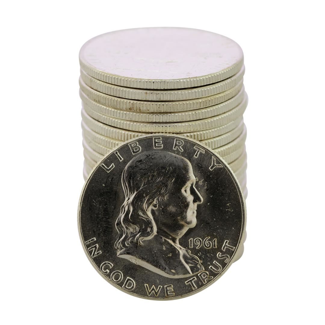 Roll of (20) Brilliant Uncirculated 1961 Franklin Half Dollar Coins