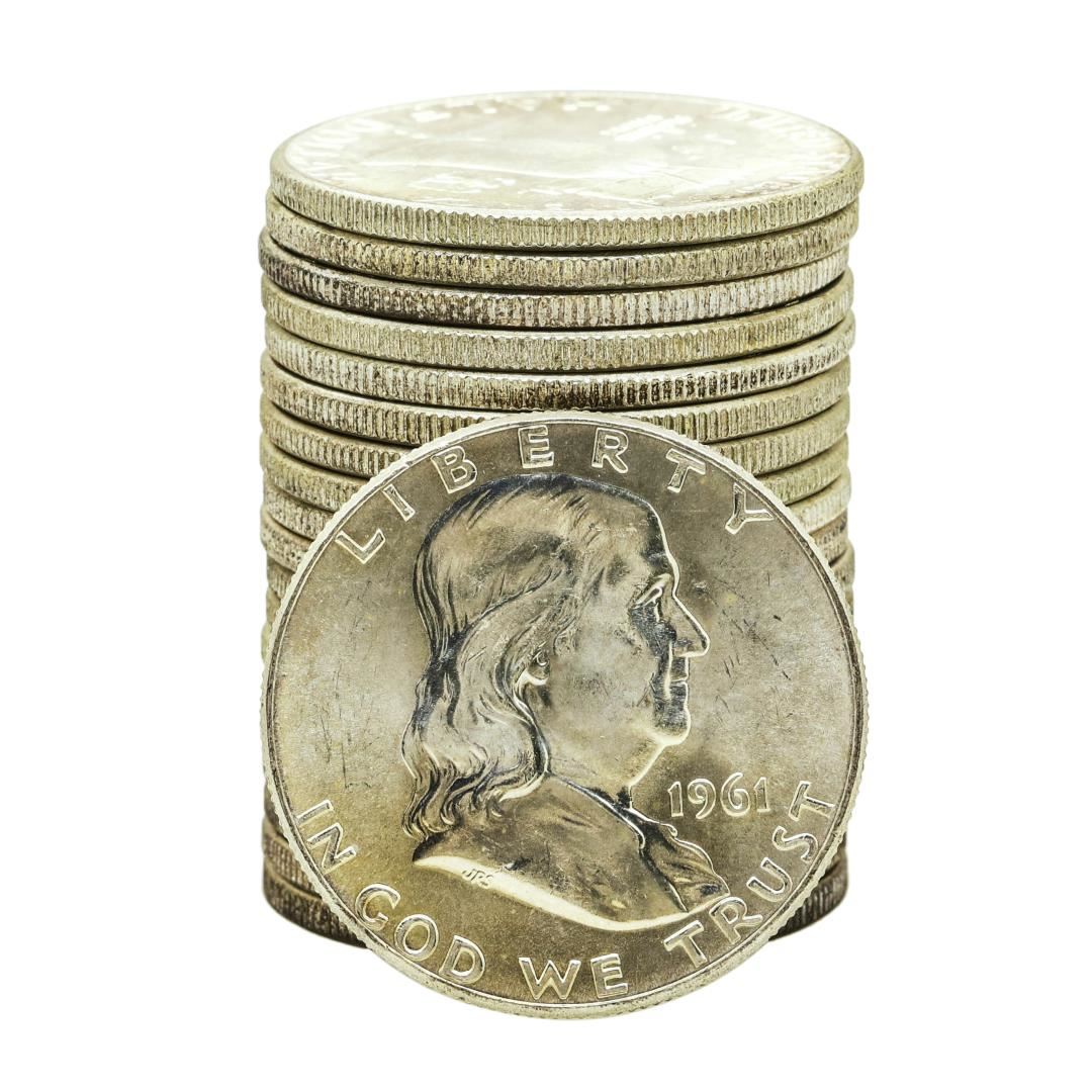 Roll of (20) Brilliant Uncirculated 1961 Franklin Half Dollar Coins