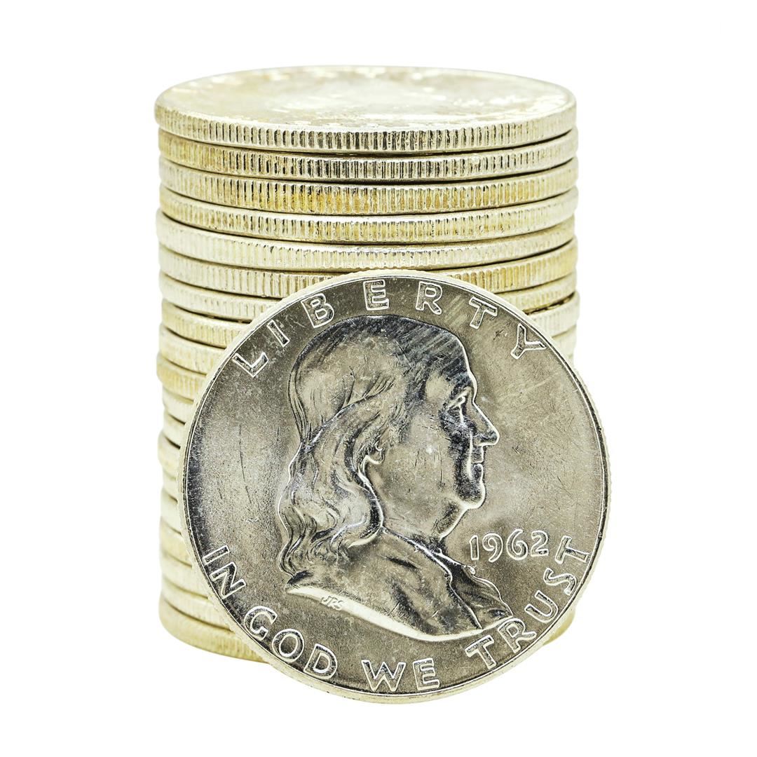 Roll of (20) Brilliant Uncirculated 1962 Franklin Half Dollar Coins
