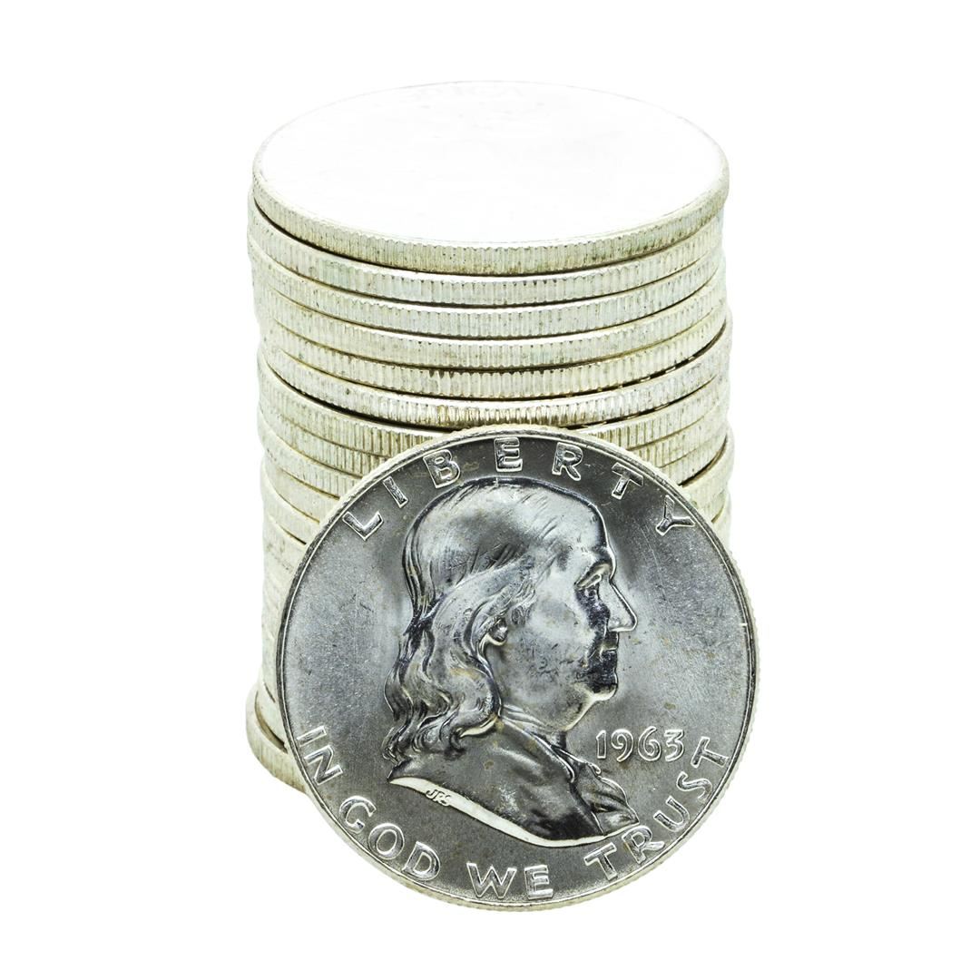 Roll of (20) Brilliant Uncirculated 1963-D Franklin Half Dollar Coins