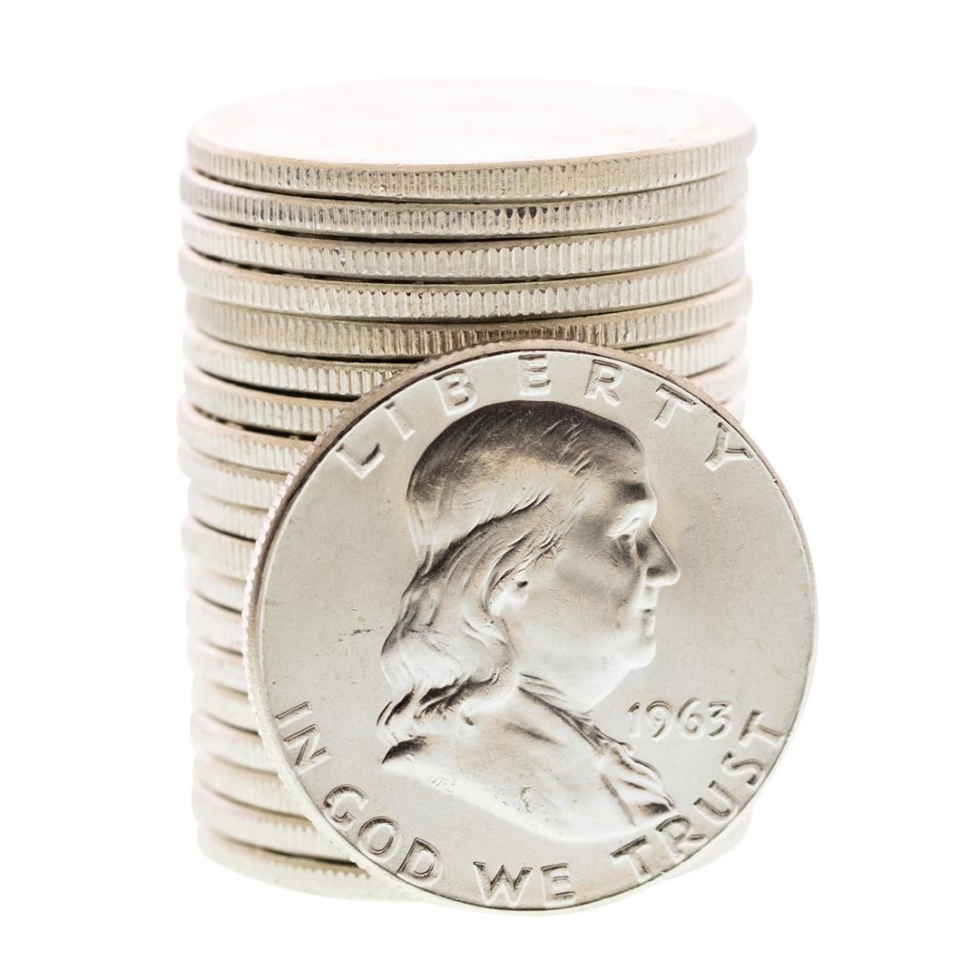 Roll of (20) Brilliant Uncirculated 1963 Franklin Half Dollar Coins