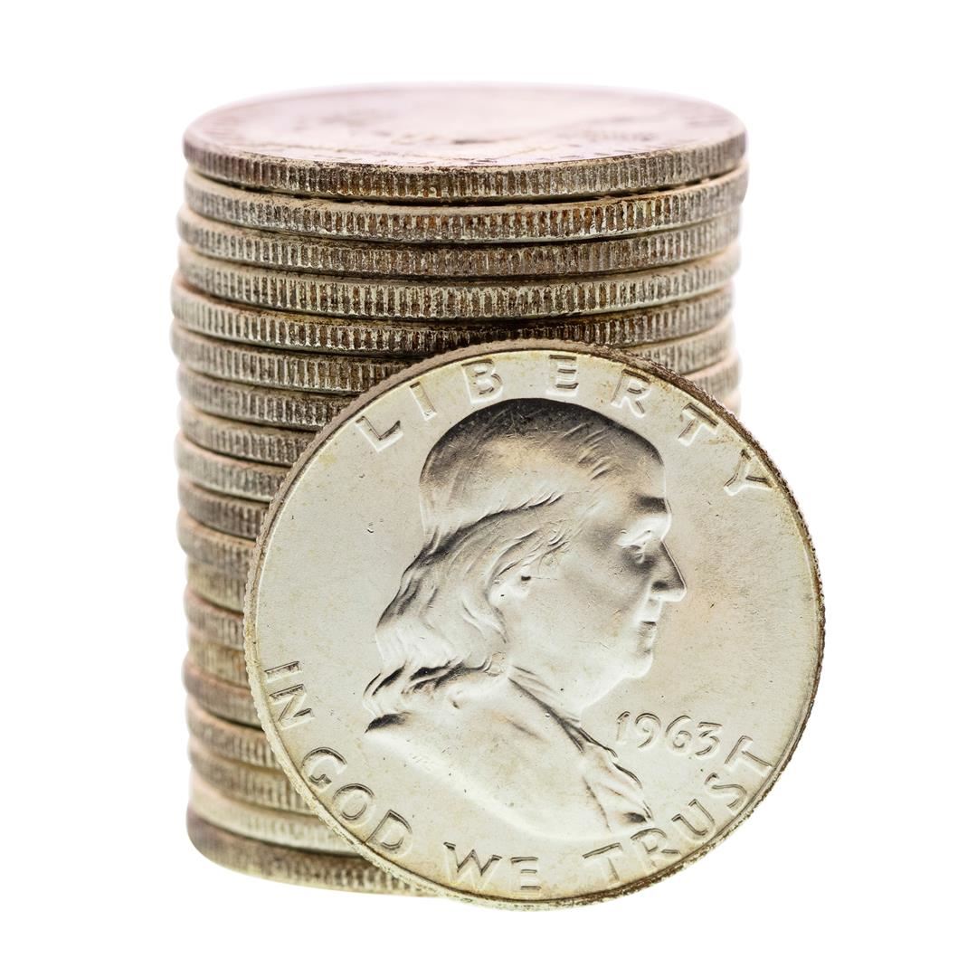 Roll of (20) Brilliant Uncirculated 1963 Franklin Half Dollar Coins