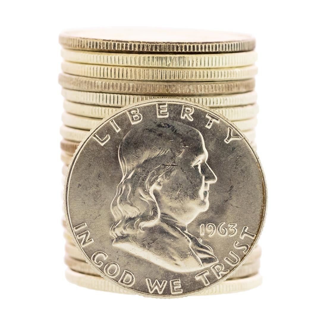 Roll of (20) Brilliant Uncirculated 1963 Franklin Half Dollar Coins