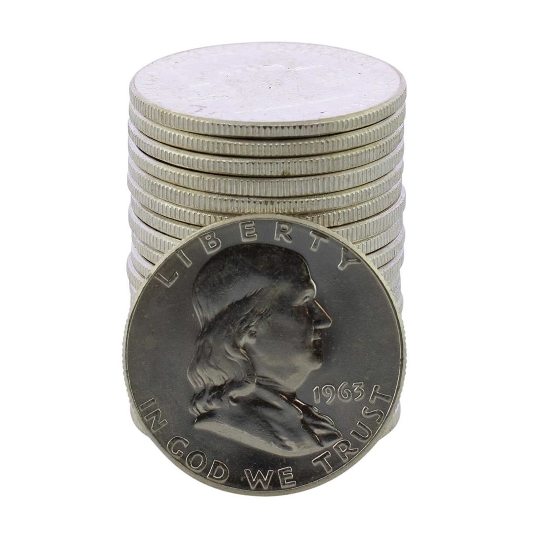 Roll of (20) Brilliant Uncirculated 1963 Franklin Half Dollar Coins