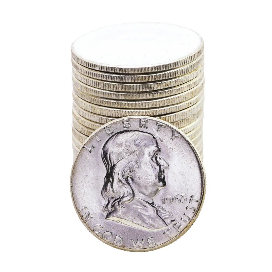 Roll of (20) Brilliant Uncirculated 1963 Franklin Half Dollar Coins
