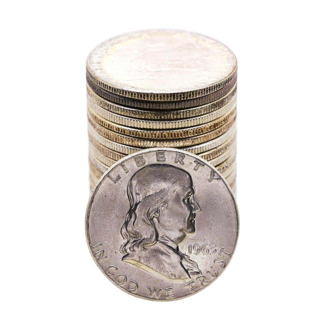 Roll of (20) Brilliant Uncirculated 1963 Franklin Half Dollar Coins