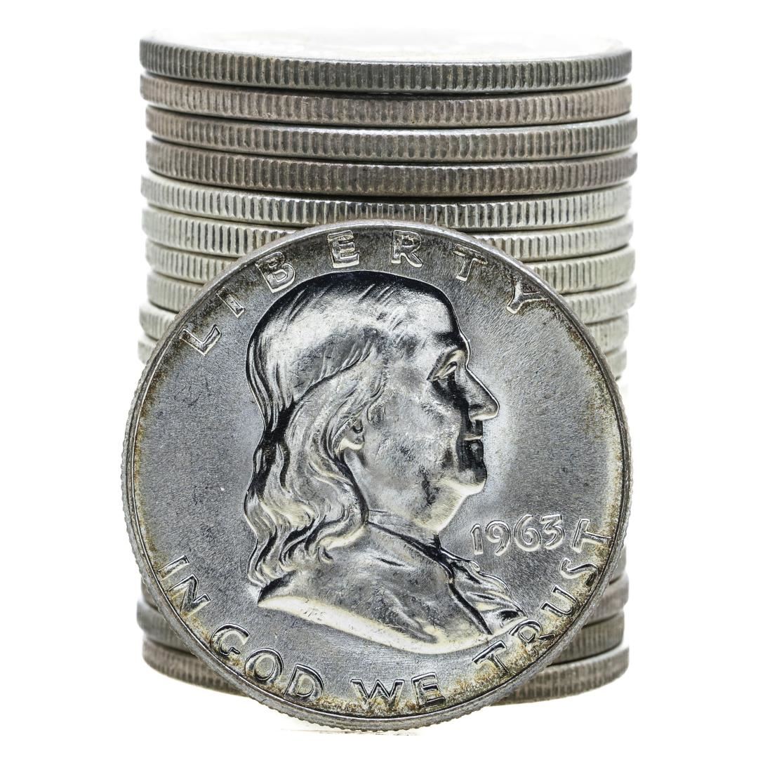 Roll of (20) Brilliant Uncirculated 1963 Franklin Half Dollar Coins