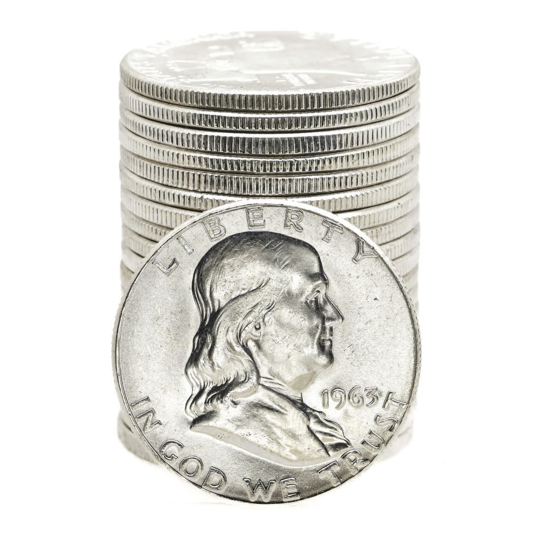 Roll of (20) Brilliant Uncirculated 1963 Franklin Half Dollar Coins