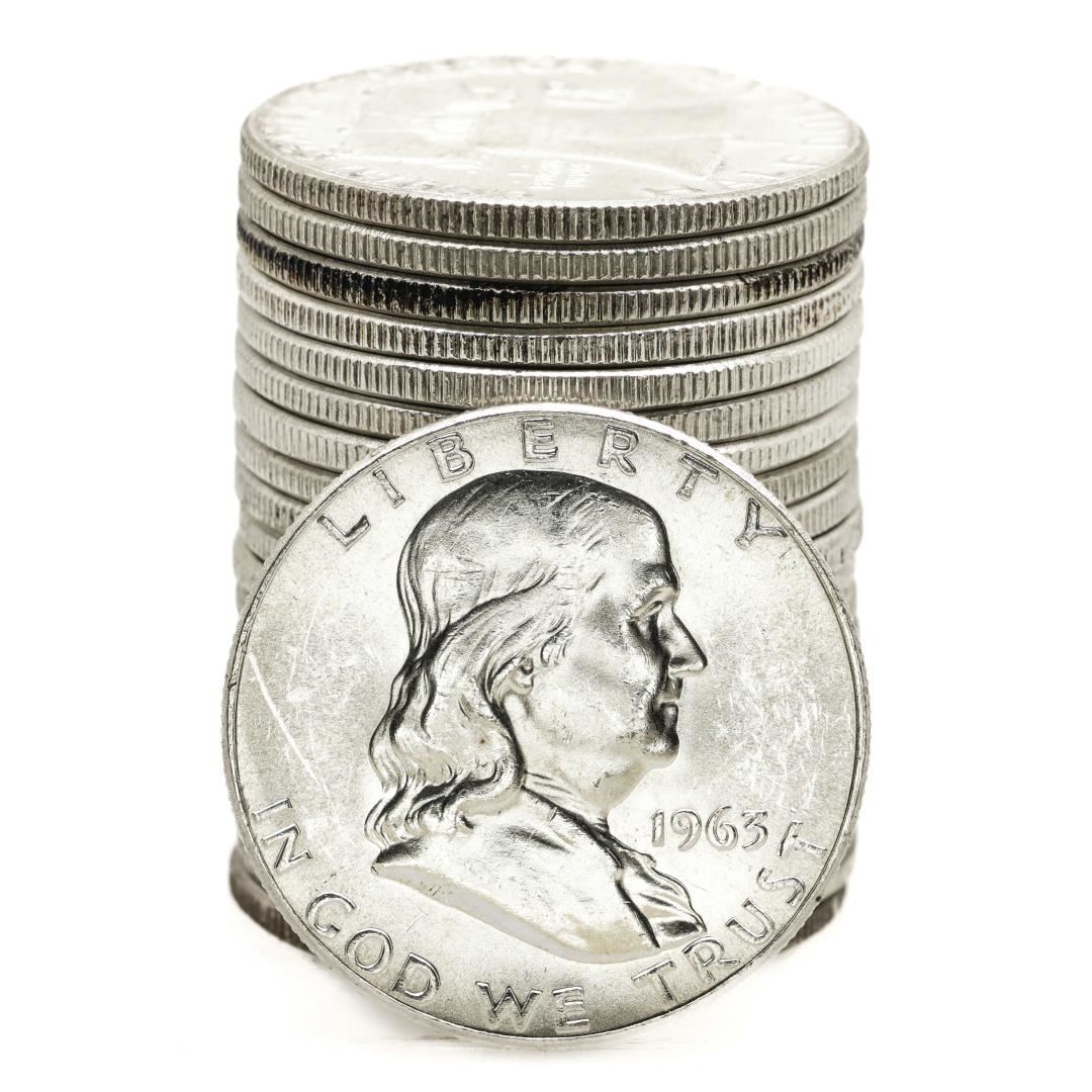 Roll of (20) Brilliant Uncirculated 1963 Franklin Half Dollar Coins