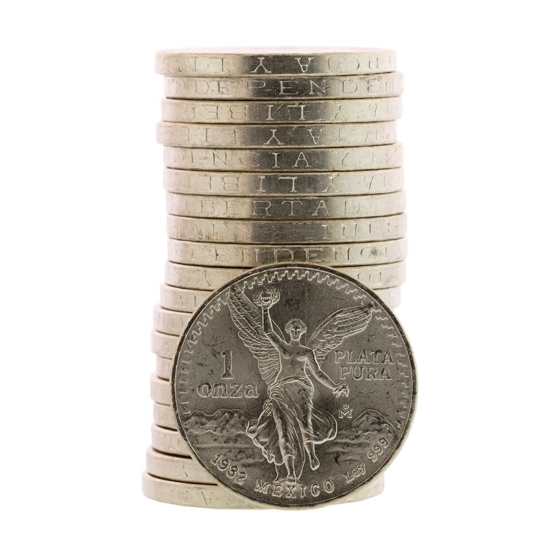 One Roll of (20) Brilliant Uncirculated 1982-MO Mexico Libertad Silver Coins.