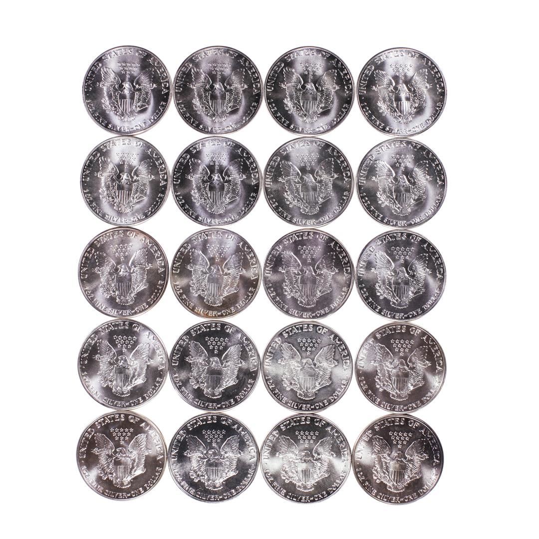 One Roll of (20) Brilliant Uncirculated 1986 $1 American Silver Eagle Coins.