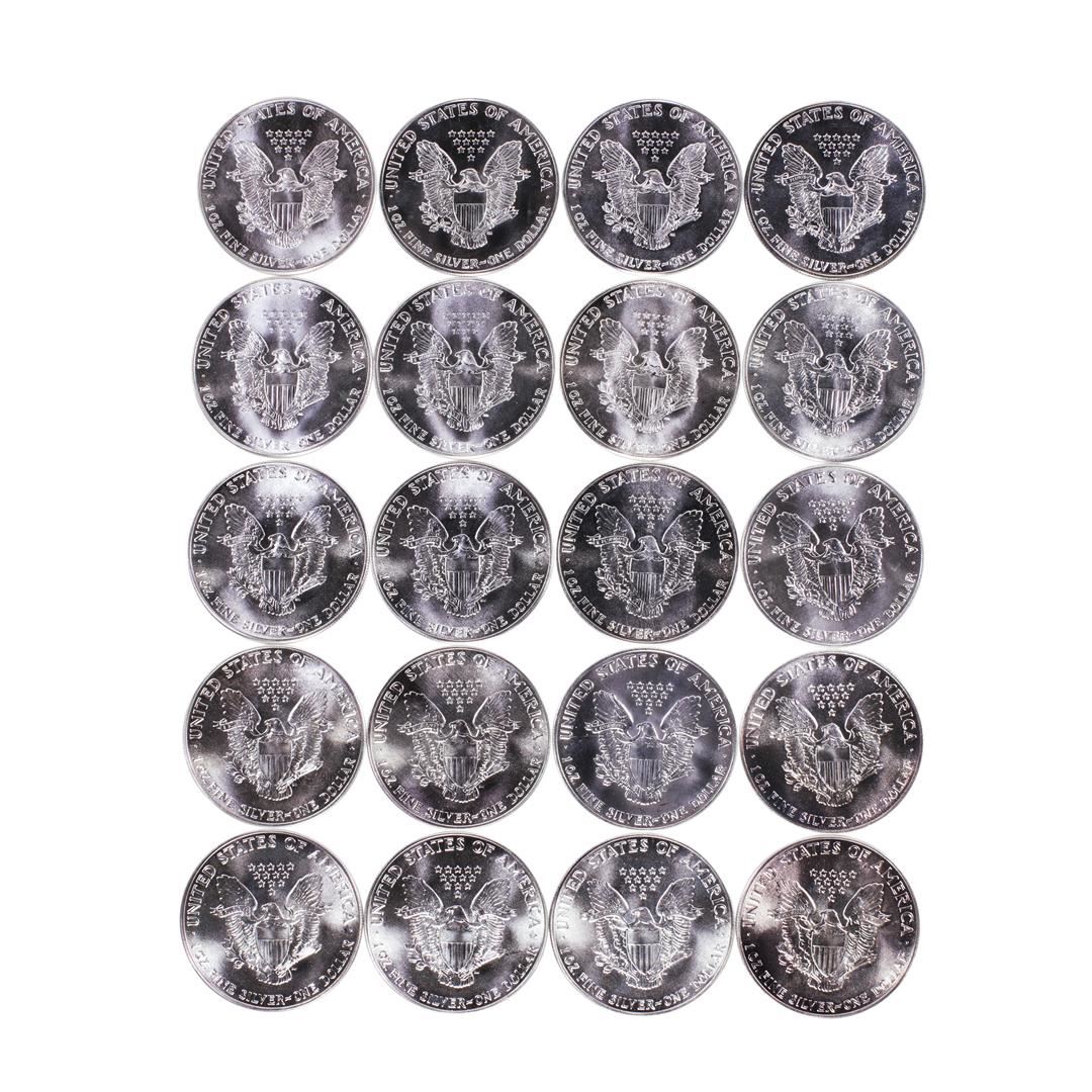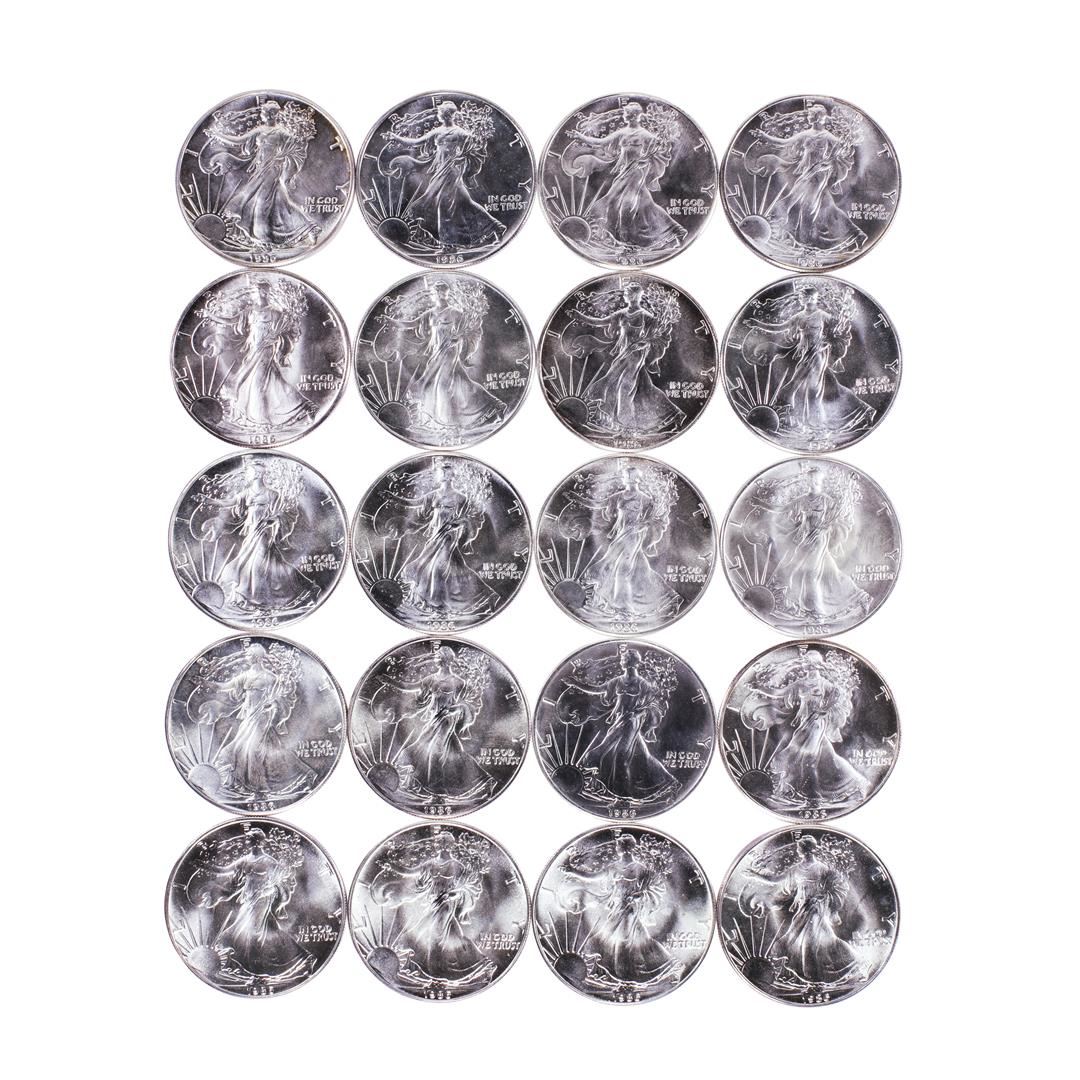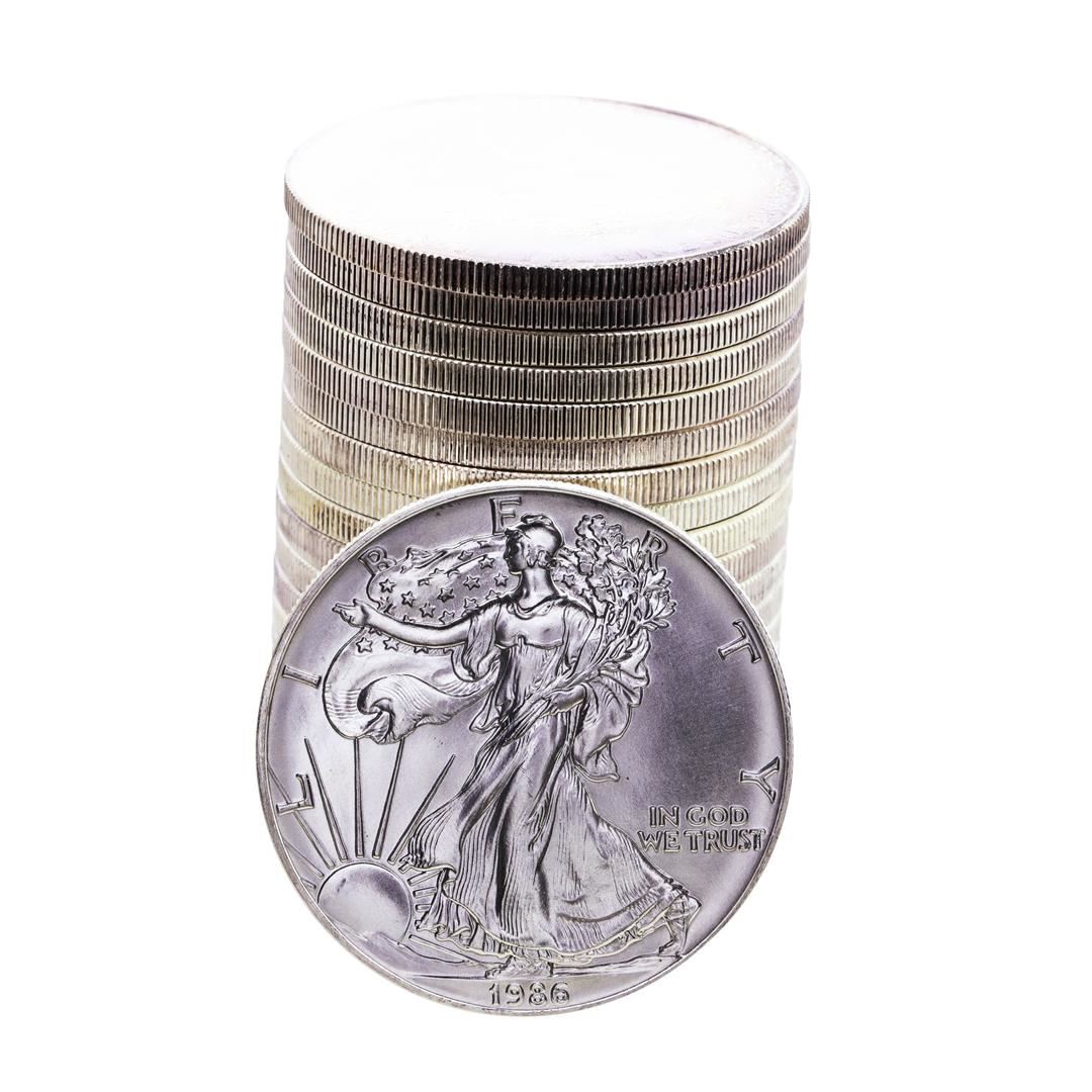 One Roll of (20) Brilliant Uncirculated 1986 $1 American Silver Eagle Coins.