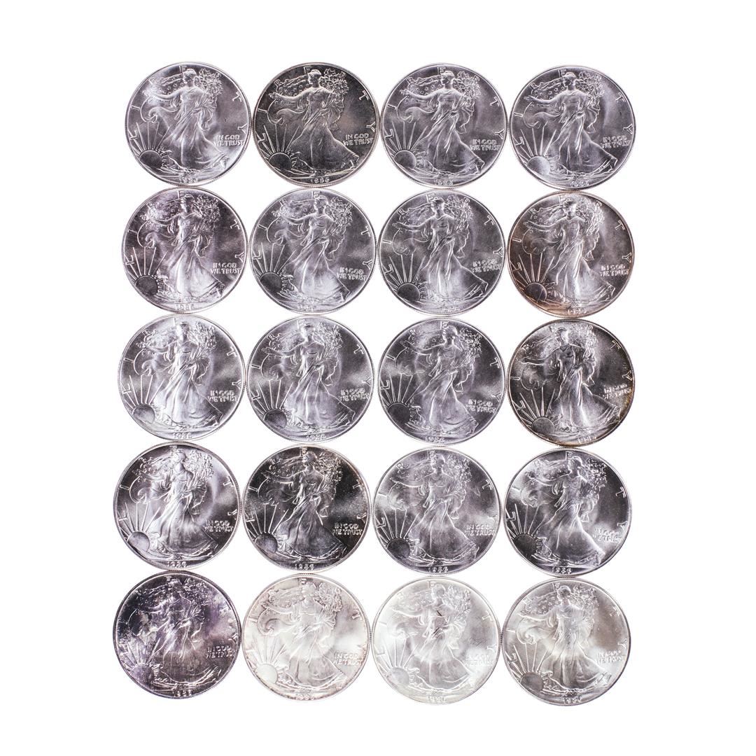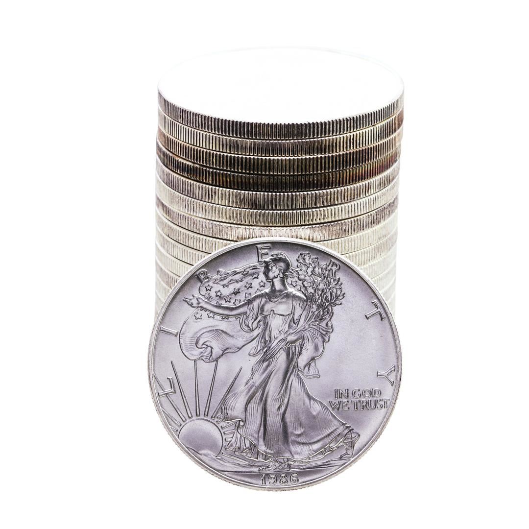 One Roll of (20) Brilliant Uncirculated 1986 $1 American Silver Eagle Coins.