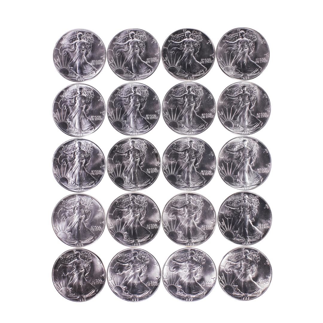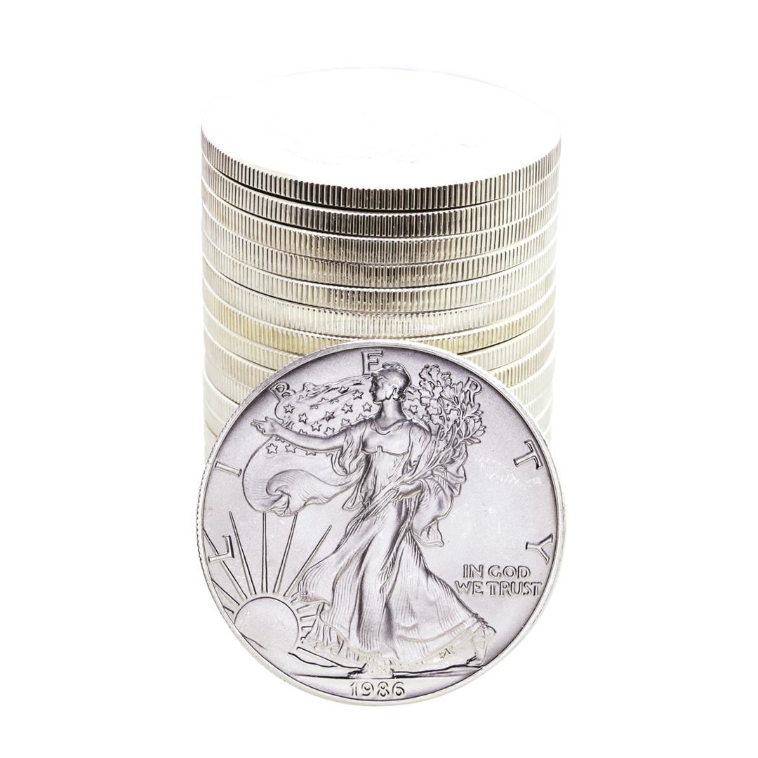 One Roll of (20) Brilliant Uncirculated 1986 $1 American Silver Eagle Coins.