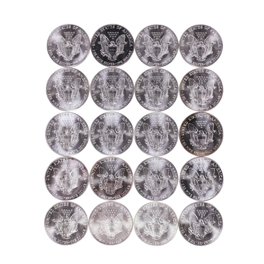 One Roll of (20) Brilliant Uncirculated 1986 $1 American Silver Eagle Coins.