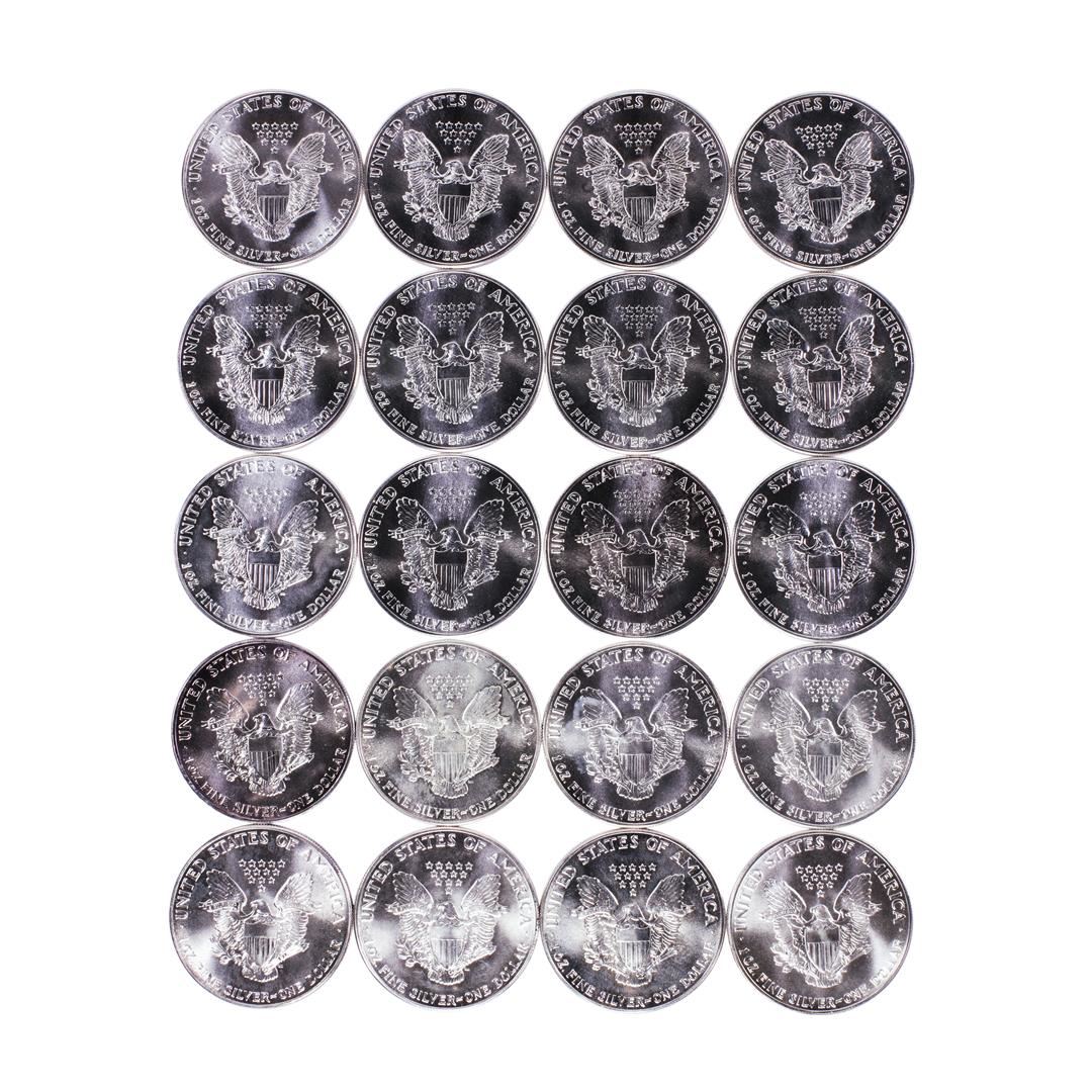 One Roll of (20) Brilliant Uncirculated 1986 $1 American Silver Eagle Coins.