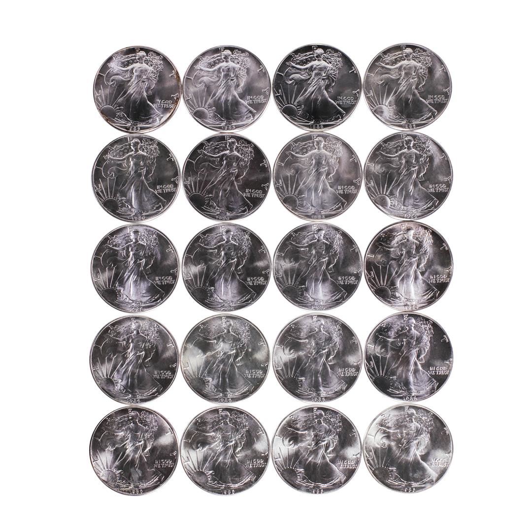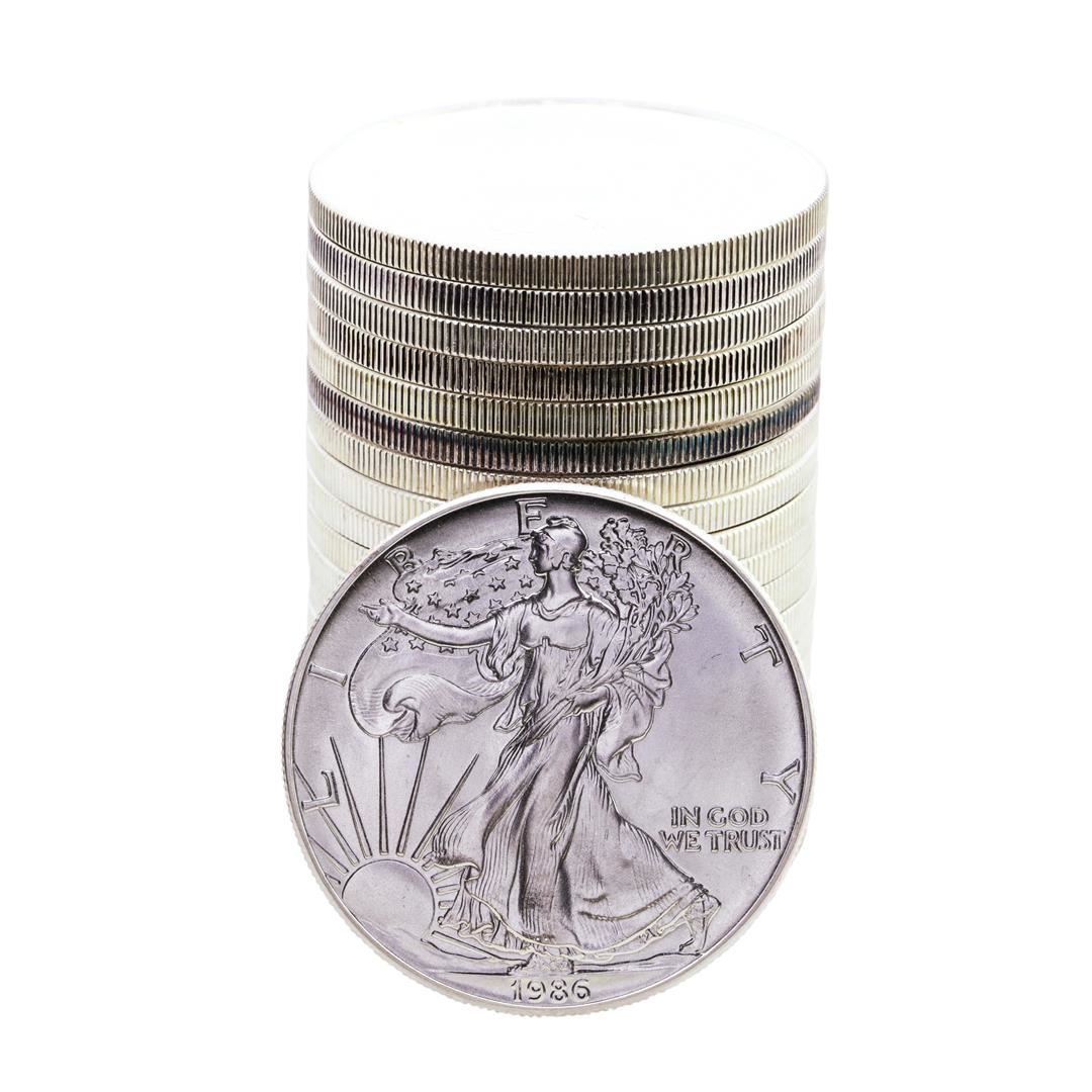 One Roll of (20) Brilliant Uncirculated 1986 $1 American Silver Eagle Coins.
