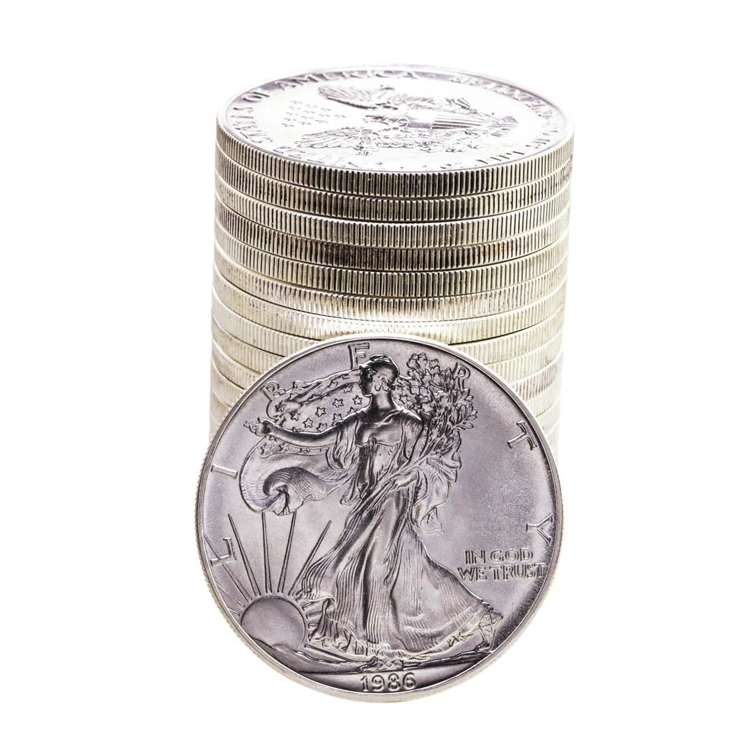 One Roll of (20) Brilliant Uncirculated 1986 $1 American Silver Eagle Coins.