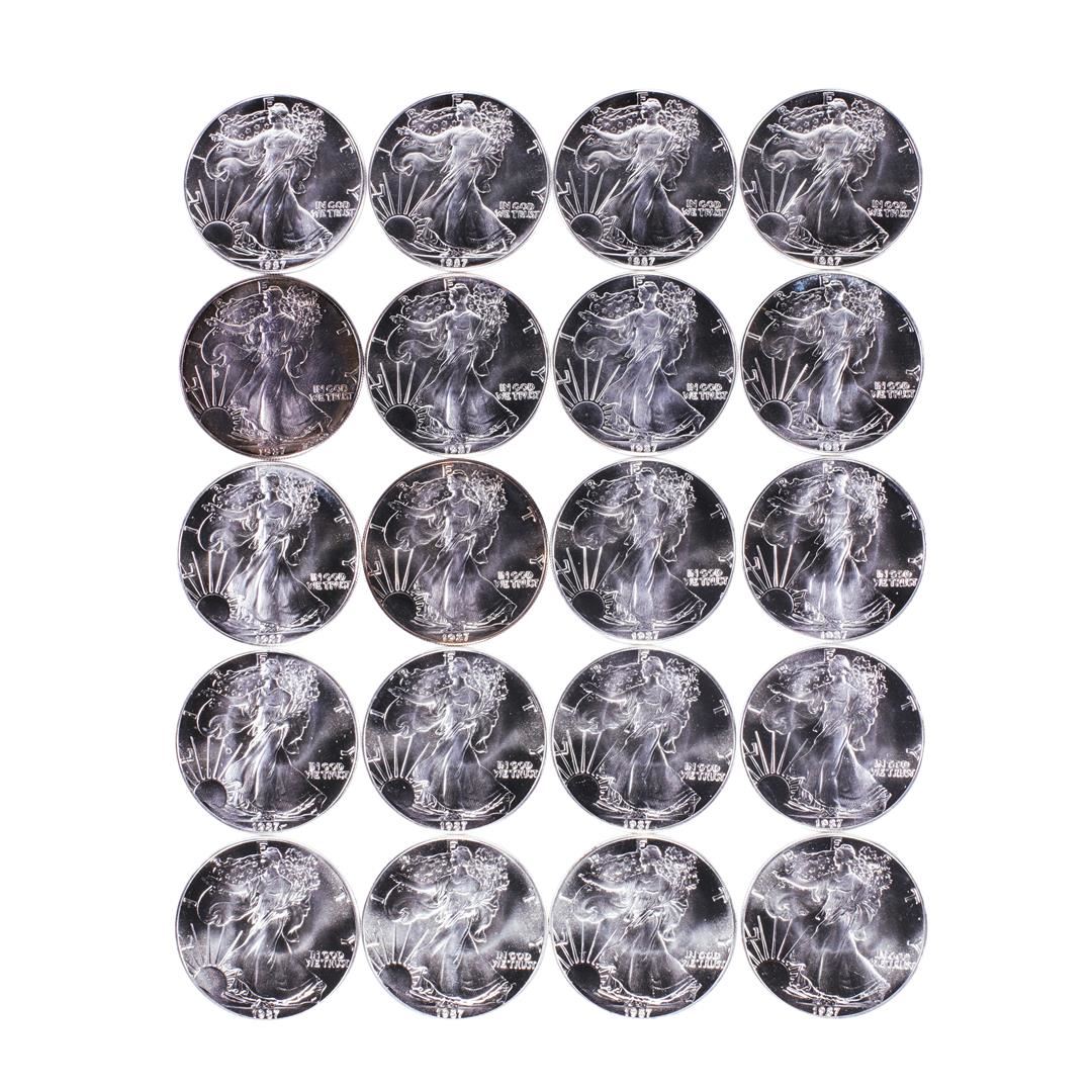 Roll of (20) Brilliant Uncirculated 1987 $1 American Silver Eagle Coins