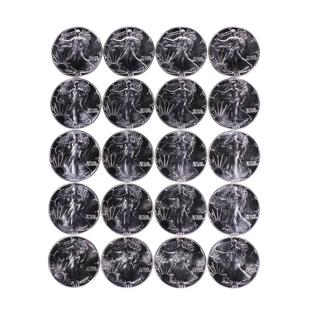 Roll of (20) Brilliant Uncirculated 1988 $1 American Silver Eagle Coins