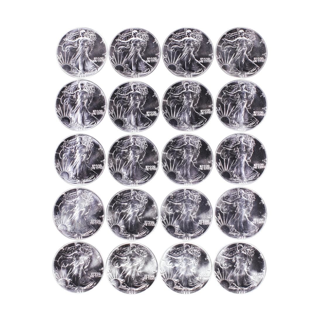 Roll of (20) Brilliant Uncirculated 1988 $1 American Silver Eagle Coins