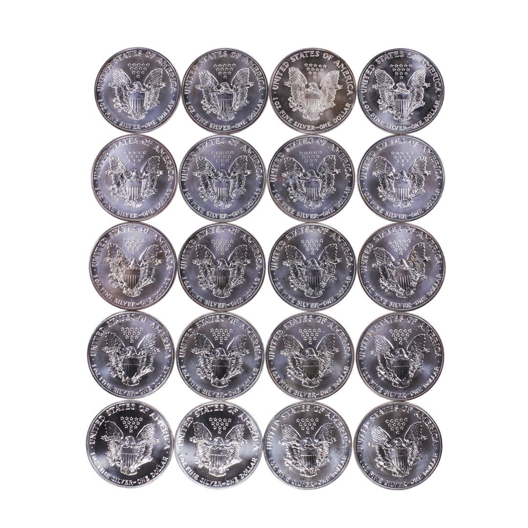One Roll of (20) Brilliant Uncirculated 1990 $1 American Silver Eagle Coins.