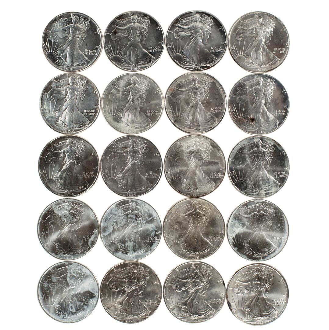 Roll of (20) Brilliant Uncirculated 1990-1997 $1 American Silver Eagle Coins