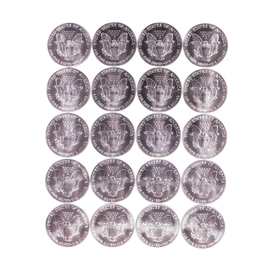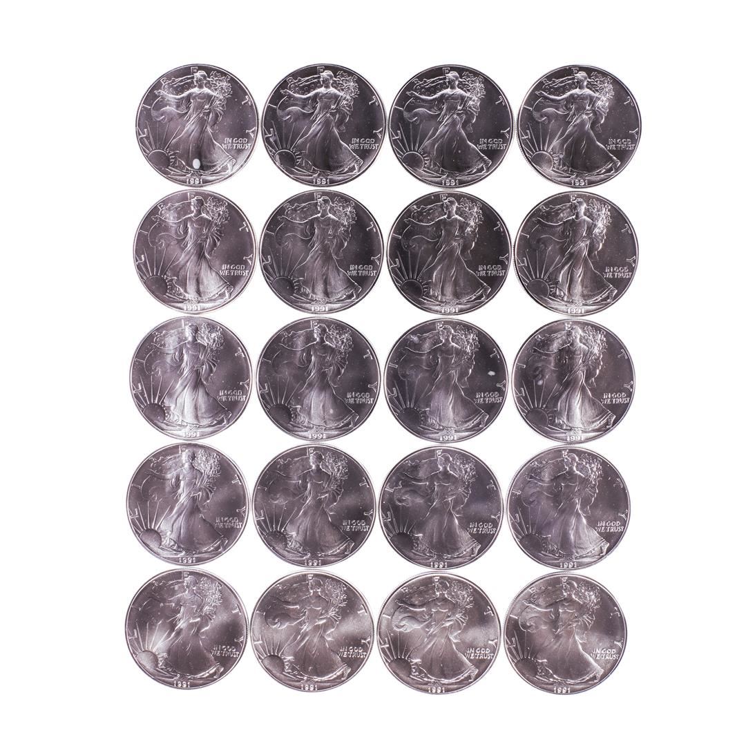 Roll of (20) Brilliant Uncirculated 1991 $1 American Silver Eagle Coins