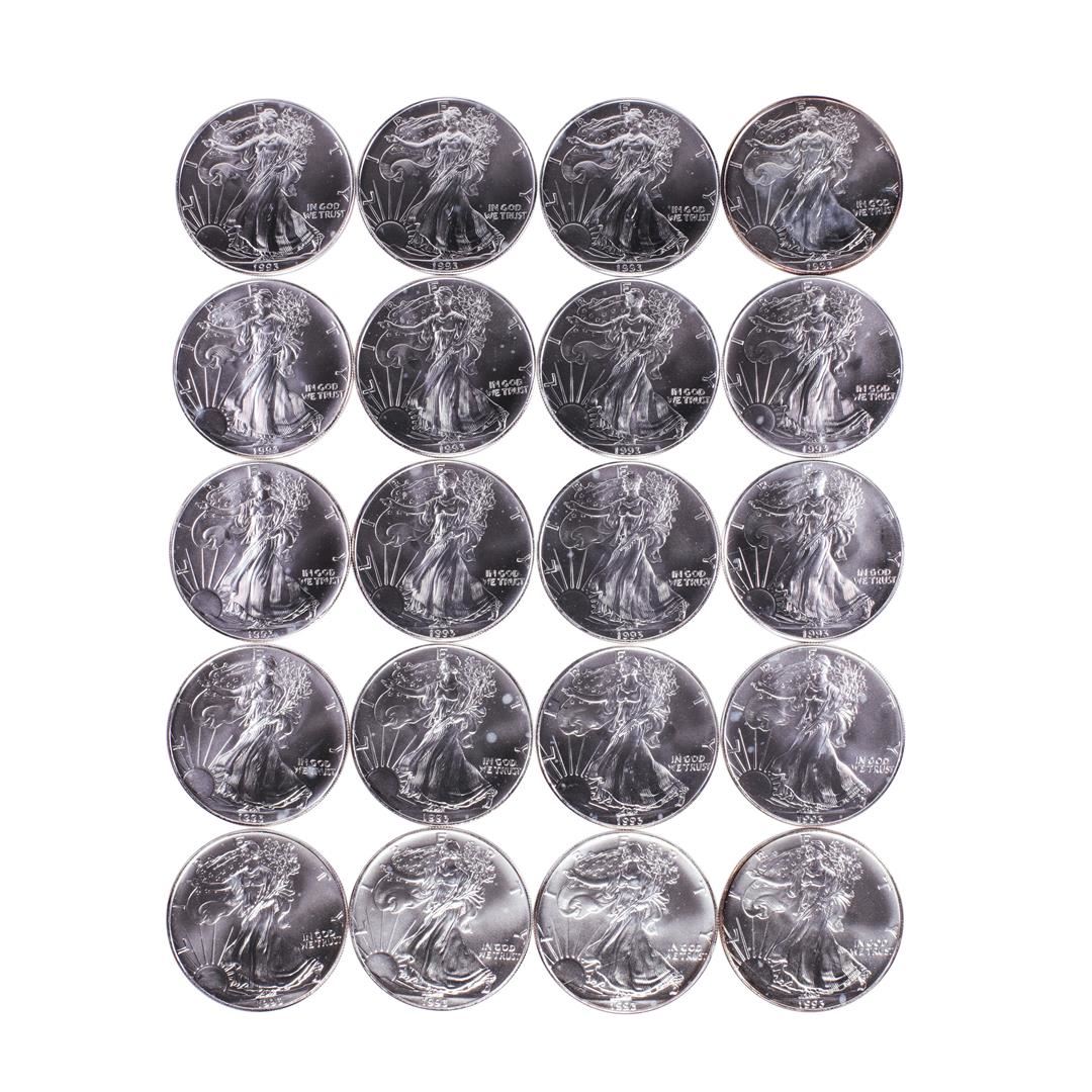 Roll of (20) Brilliant Uncirculated 1993 $1 American Silver Eagle Coins