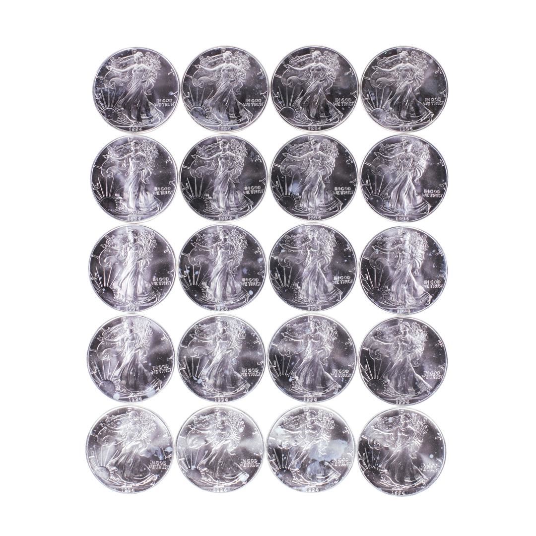One Roll of (20) Brilliant Uncirculated 1994 $1 American Silver Eagle Coins.