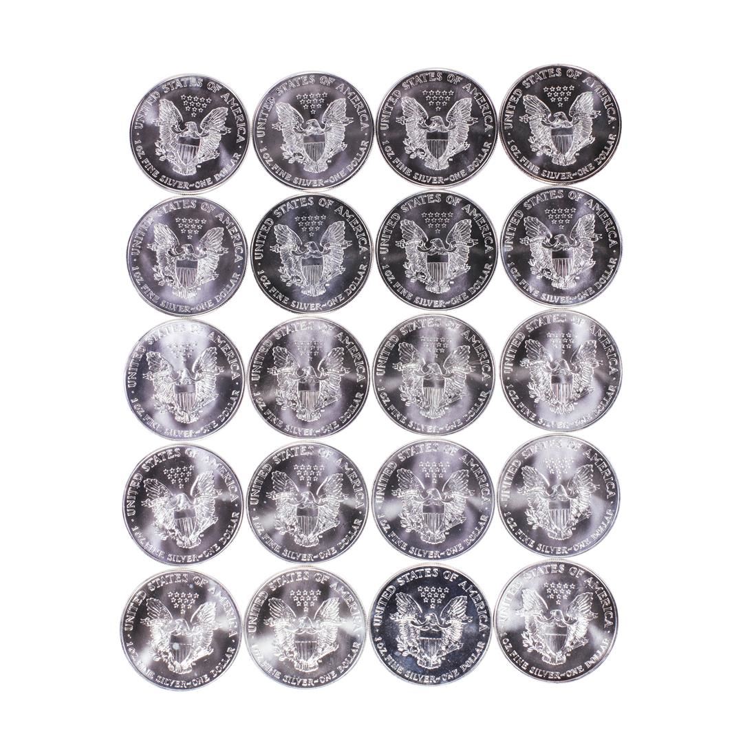One Roll of (20) Brilliant Uncirculated 1994 $1 American Silver Eagle Coins.