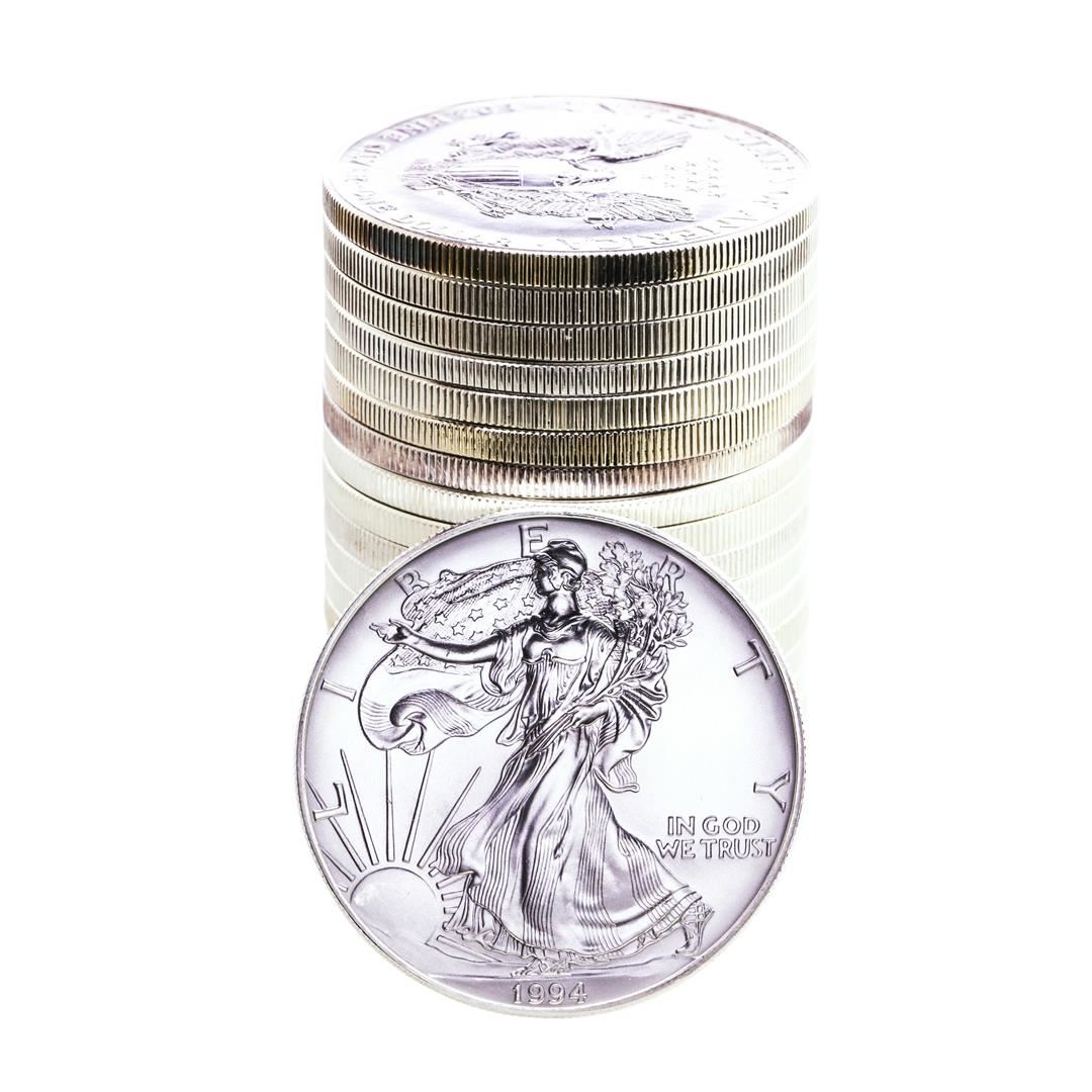 One Roll of (20) Brilliant Uncirculated 1994 $1 American Silver Eagle Coins.