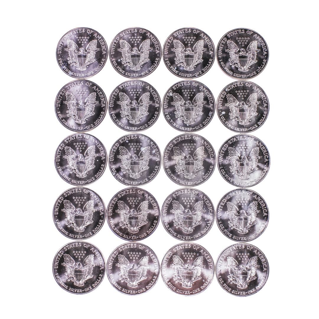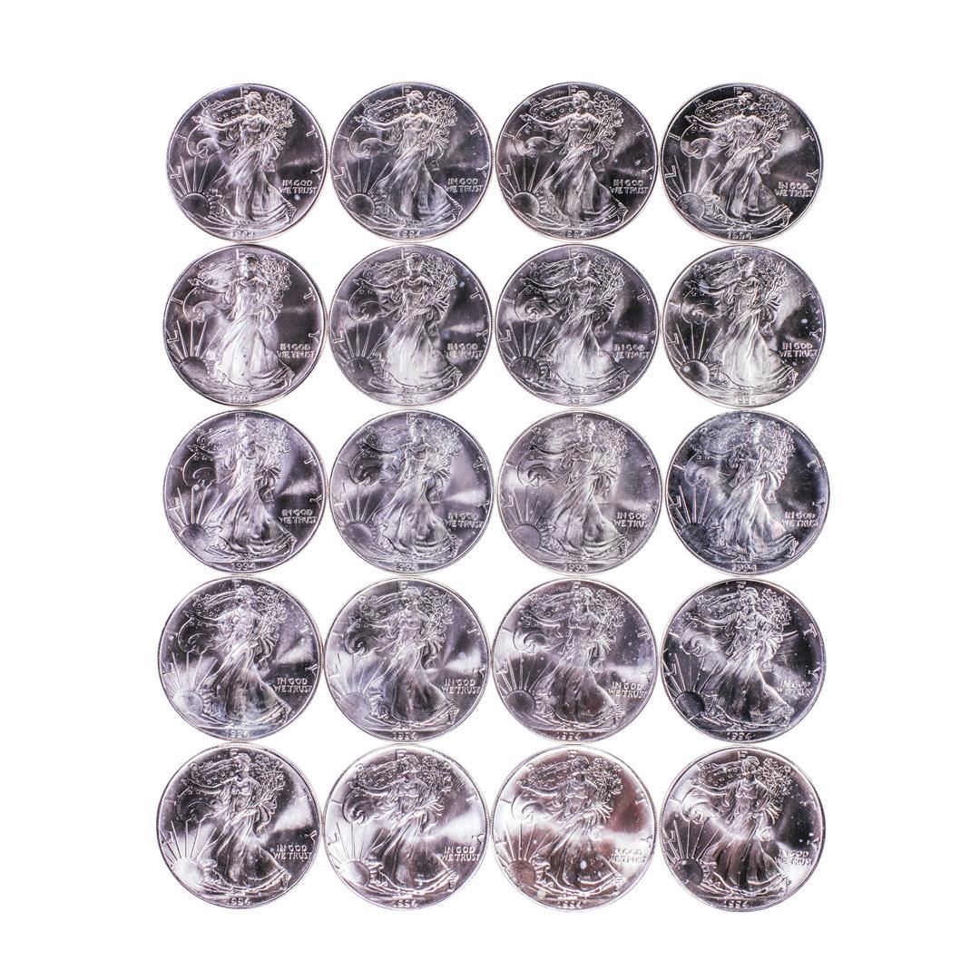 One Roll of (20) Brilliant Uncirculated 1994 $1 American Silver Eagle Coins.