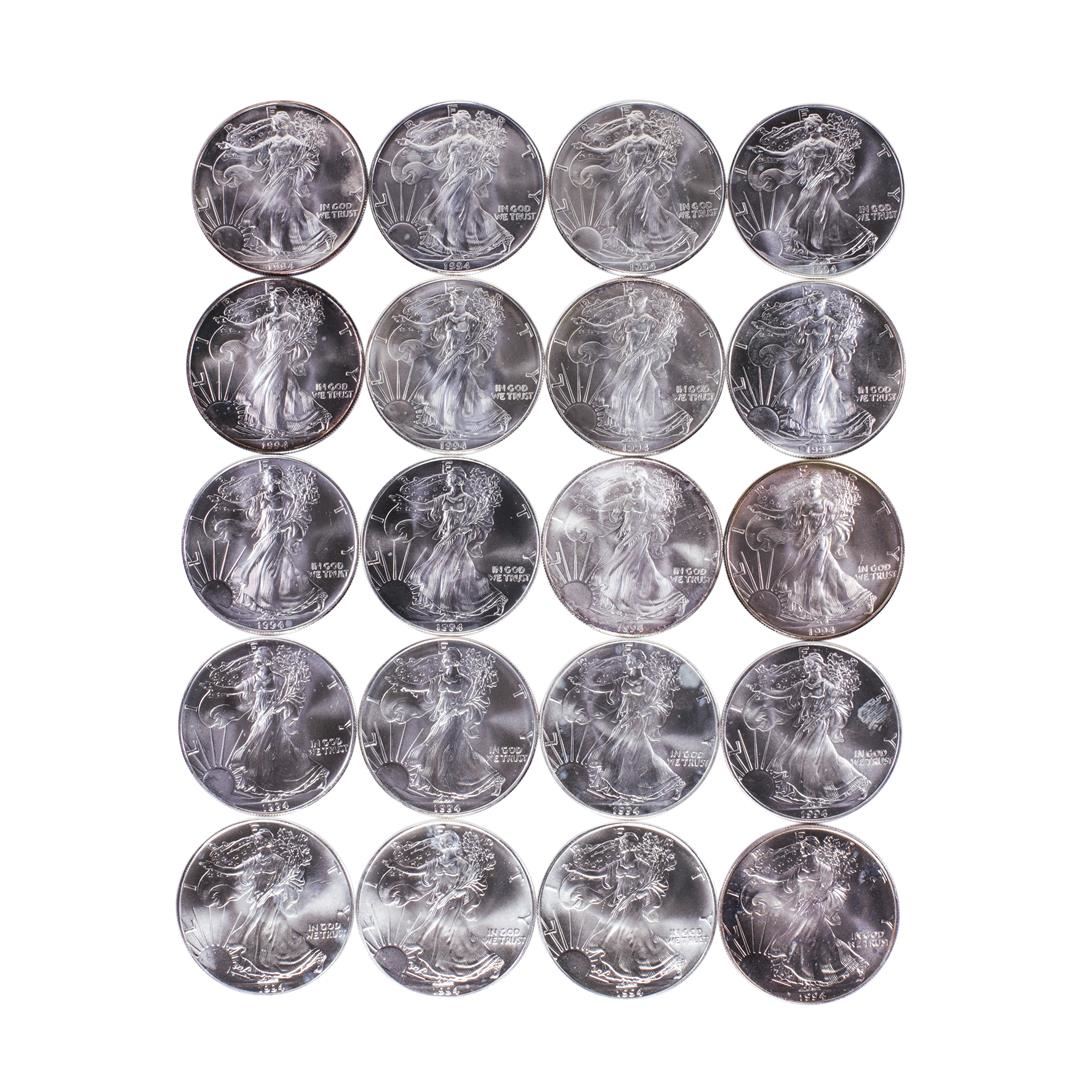 One Roll of (20) Brilliant Uncirculated 1994 $1 American Silver Eagle Coins.