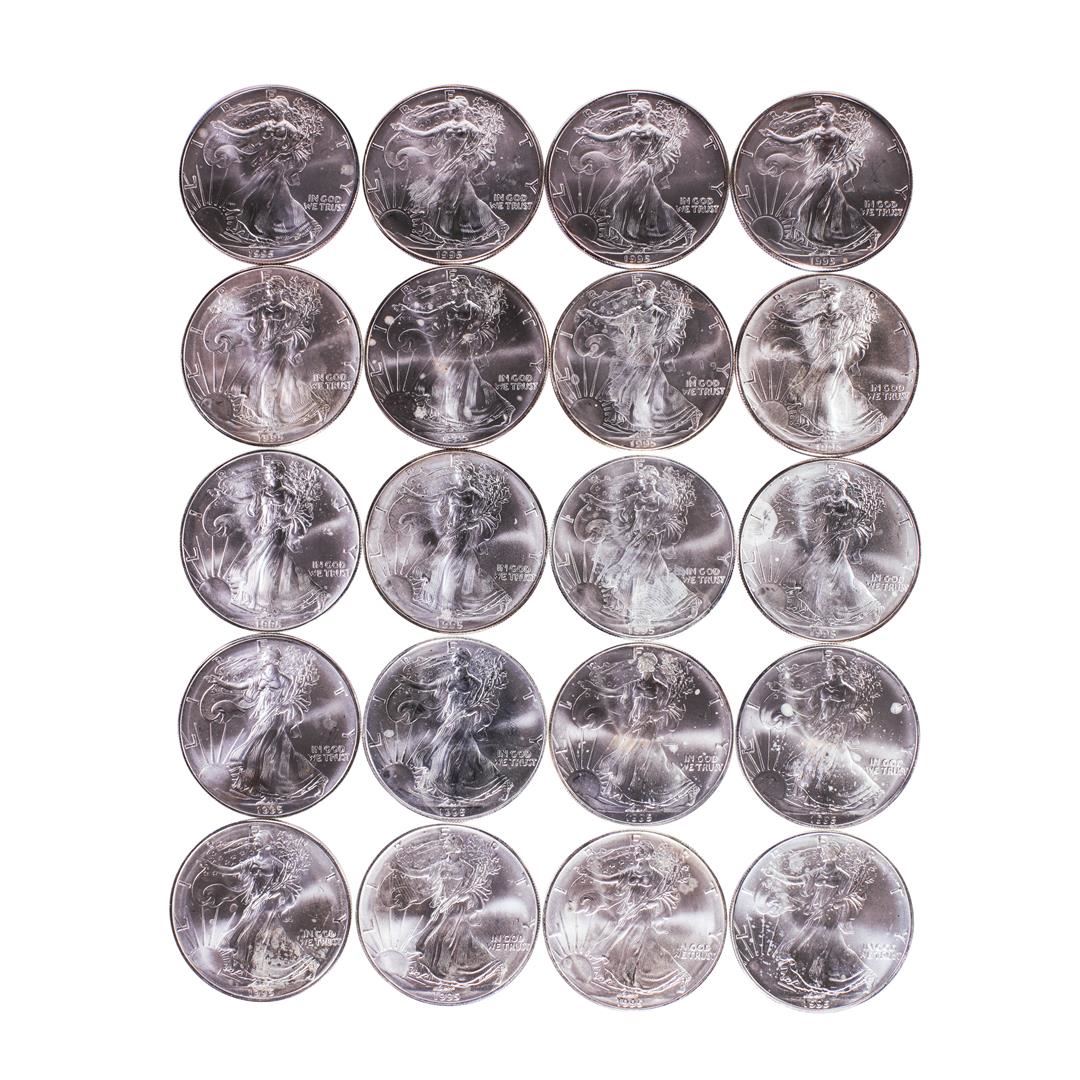 Roll of (20) Brilliant Uncirculated 1995 $1 American Silver Eagle Coins