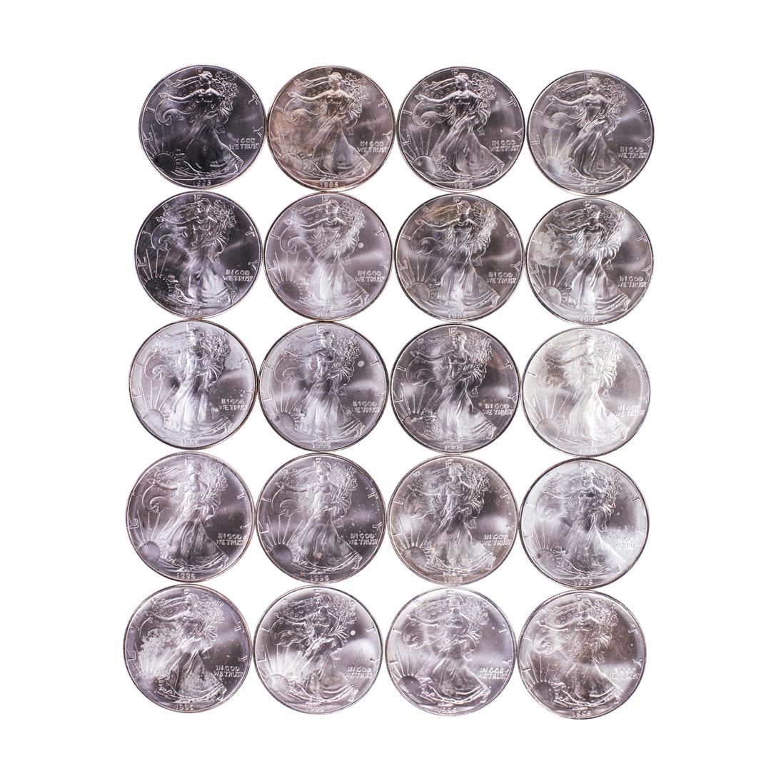 Roll of (20) Brilliant Uncirculated 1995 $1 American Silver Eagle Coins
