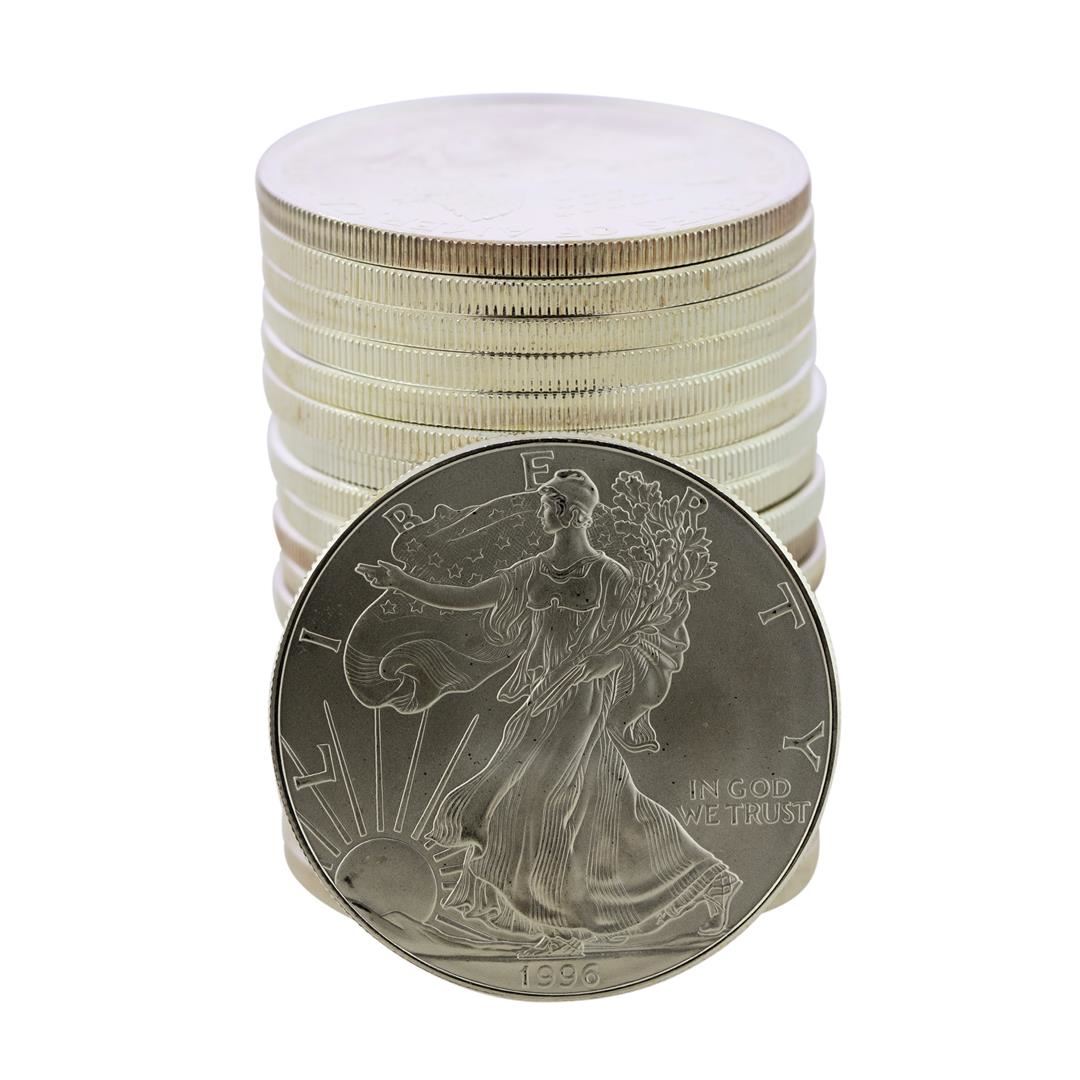 One Roll of (20) Brilliant Uncirculated 1996 $1 American Silver Eagle Coins.