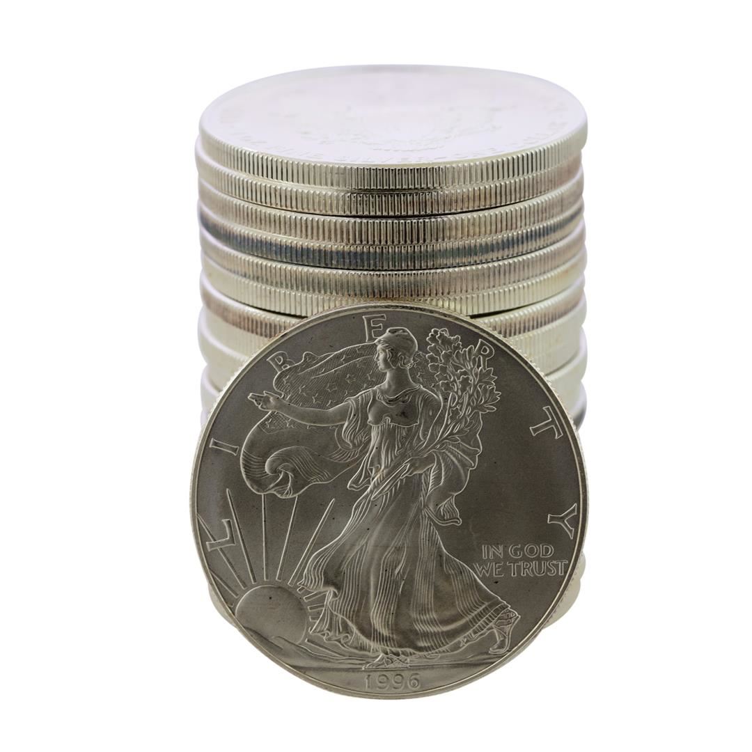 One Roll of (20) Brilliant Uncirculated 1996 $1 American Silver Eagle Coins.