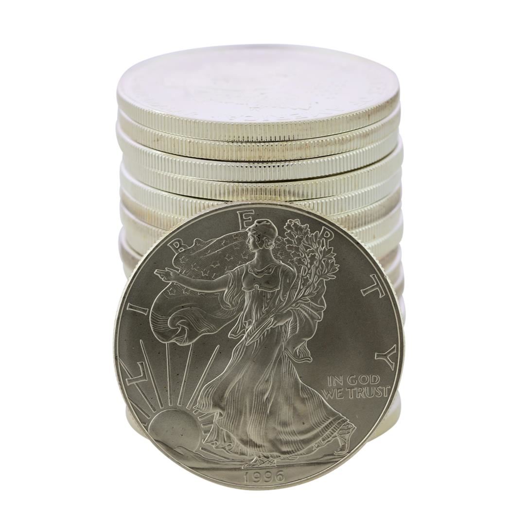 One Roll of (20) Brilliant Uncirculated 1996 $1 American Silver Eagle Coins.