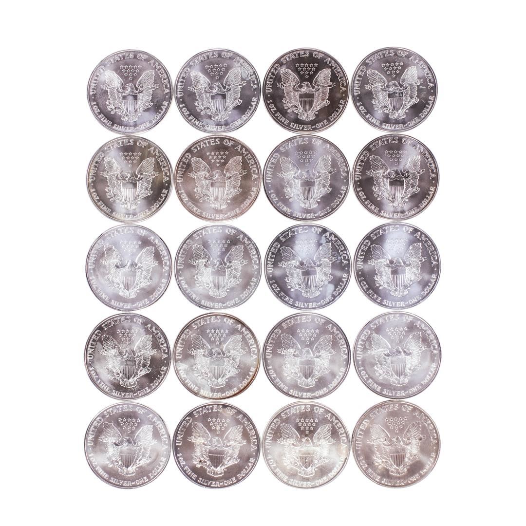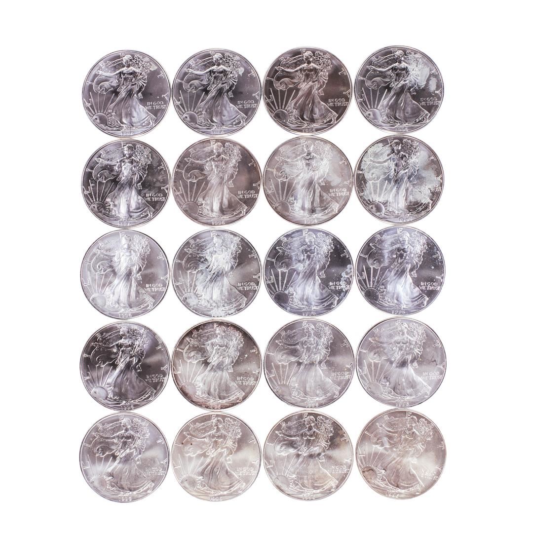 One Roll of (20) Brilliant Uncirculated 1996 $1 American Silver Eagle Coins.