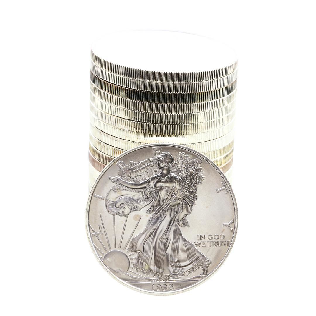 One Roll of (20) Brilliant Uncirculated 1996 $1 American Silver Eagle Coins.