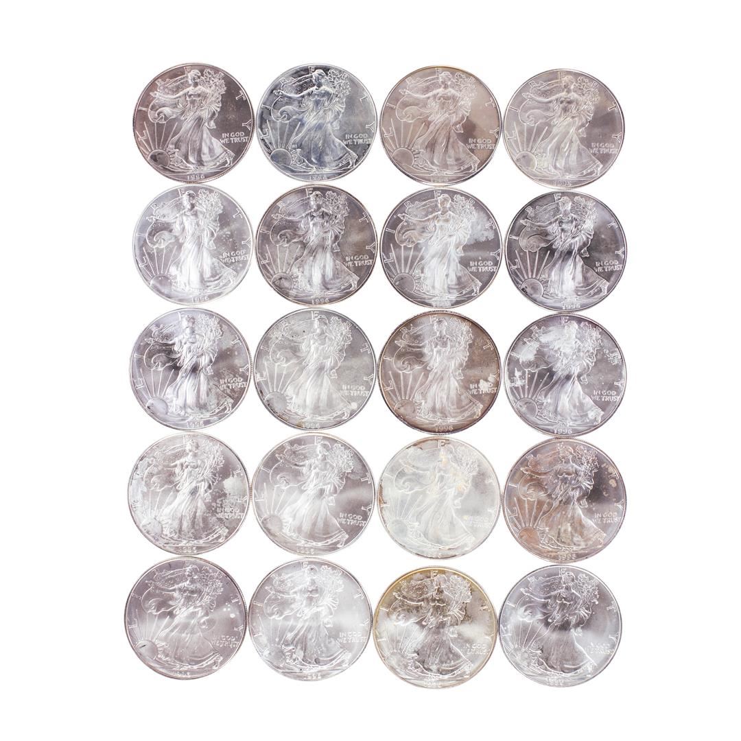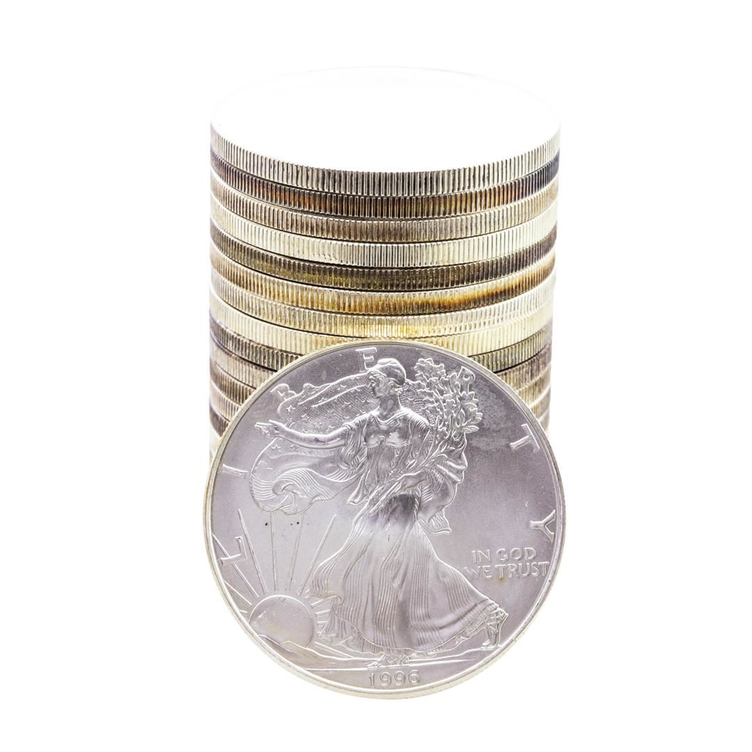One Roll of (20) Brilliant Uncirculated 1996 $1 American Silver Eagle Coins.